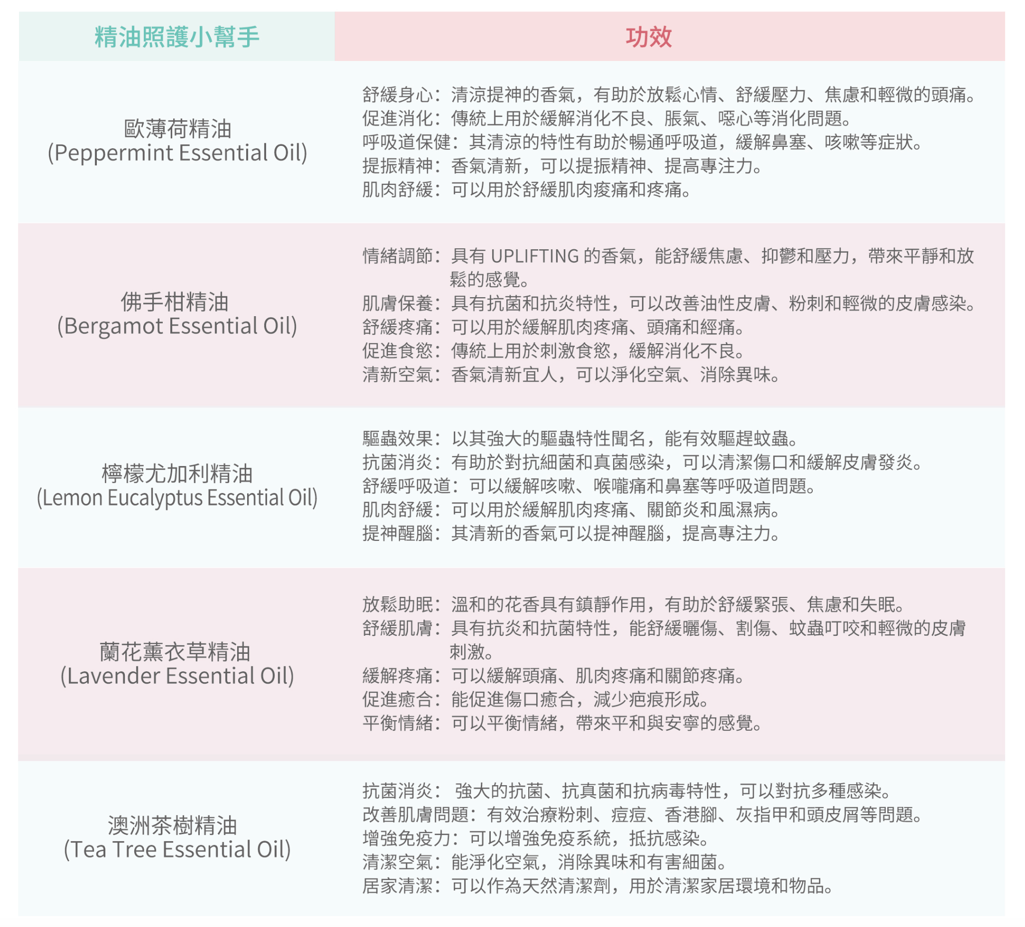 功效:舒緩身心活力滿滿、提升專注力、午後提神、戶外驅蟲、防蚊止癢。